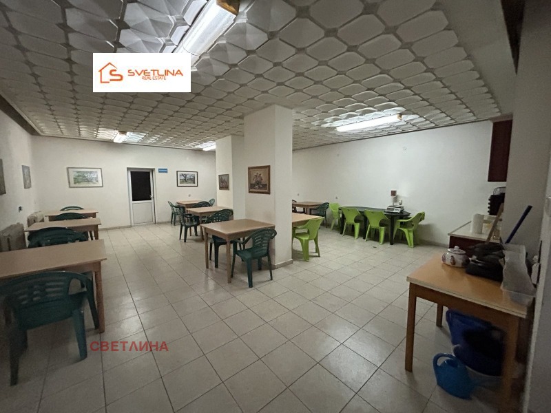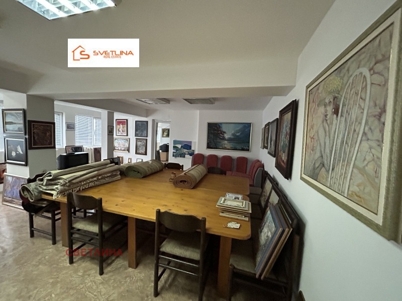Два офиса, зала с площ около 500 кв.м. която е била шивашко ателие, трапезария, съблекалня - 3 бани с тоалетни. Апартамент.