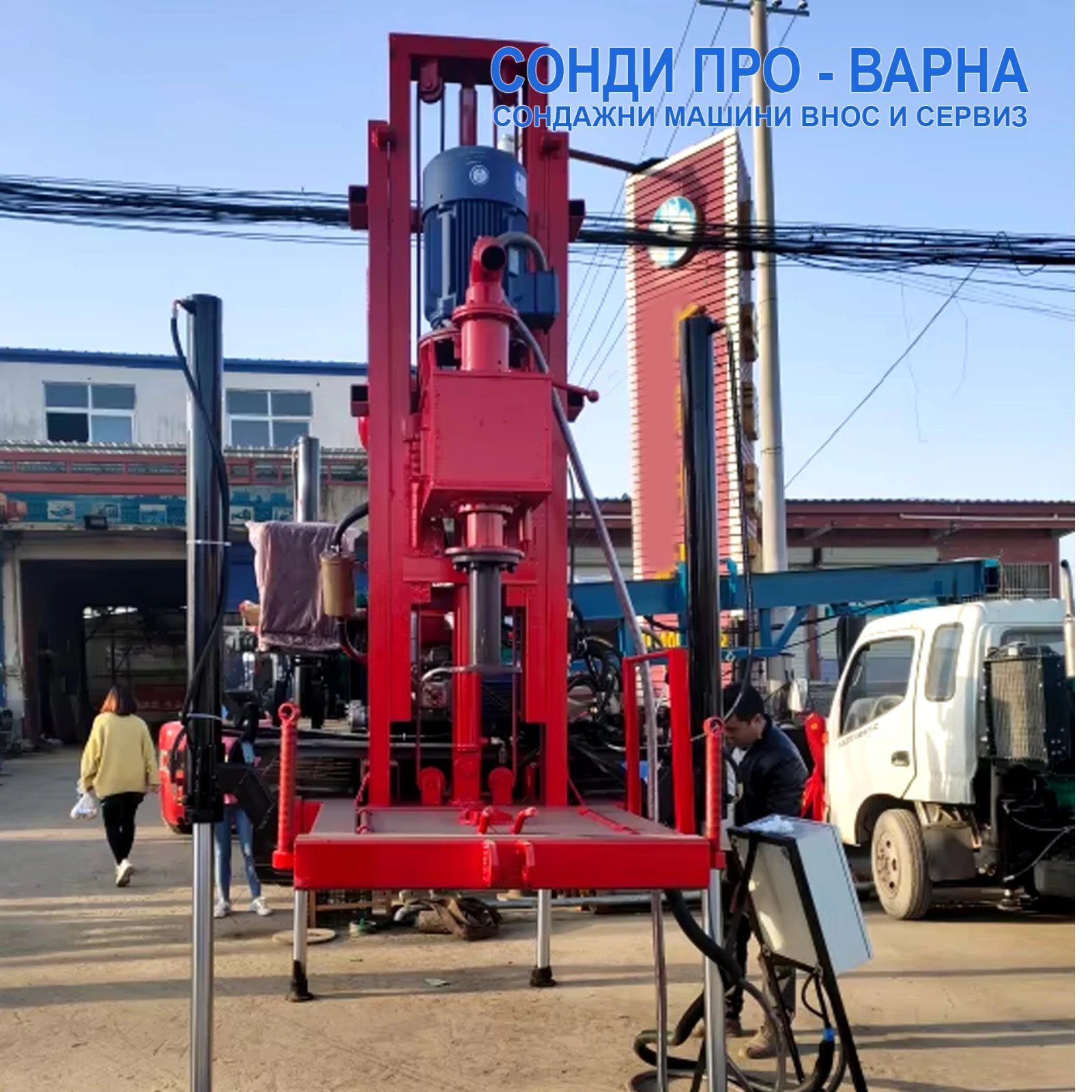 Сондажна машина Track-200CN(Neg. ) до 200 метра /сонда за кладенци/ . Моделите (Neg. ) сондажни машини са с възможности за т. н. ОБРАТНА или РЕВЕРСИВНА (Reverse circulation) и т. н. ПРАВА (Positive circulation) на водата! . Основно Предназначение (1): Водно сондиране /Сондиране с водно промиване с права циркулация/ до 200 метра за водни сондажи Основно Предназначение (2): Водно сондиране /Сондиране с водно промиване с обратна циркулация/ до 150-200 метра за кладенци . Цената е с ДДС и гаранция 12 месеца*/**! (1) Производство и доставка по поръчка до 90 дена морско навло от Китай: 60508 лева с ДДС (2) Производство и доставка по поръчка до 40 дена жп навло с влак от Китай: (по запитване) с ДДС, актуална цена само при запитване на спедитор. . /*/Гаранция 12 месеца при изпълнение на Опция (1) Техническо обслужване от Ремтехстрой Груп или от оторизиран сервизен център. /**/Гаранция 6 месеца при неизпълнение на Опция (1) Техническо обслужване от Ремтехстрой Груп или от оторизиран сервизен център. . - За повече яснота и начин на ползване на Мобилна сондажна машина Track-200CN, моля заредете видеото на адрес: youtu. be/OGa-mS-Cqvk - Други модели сондажни машини предлагани от Сонди Про-Варна, може да видите в mobile. bg: tamper. mobile. bg - Друго предлагано ново индустриално оборудване внос от Европа предлагано от РЕМТЕХСТРОЙ ГРУП може да видите на адрес: www. remtechstroy. eu/bg . Сондажна машина за кладенци с РЕВЕРСИВНА циркулация тип Track-200CN(Neg. ) е набор от сондажни функции с права циркулация и обратна циркулация в една от гъсеничните сондажни машини, положителната циркулация се използва главно за пробиване на пясъчен слой, обратната циркулация се използва главно за слой кал или камъчен слой , платформата може лесно да се справи със слой почва, слой пясък, слой кал, слой камъчета при сондиране, използван е в кладенеца за утаяване, кладенец за напояване на земеделска земя и инженерни дупки за купчини и други проекти. . ХАРАКТЕРИСТИКА: ЗАХРАНВАНЕ: ЕЛЕКТРИЧЕСКО 380V /Дизелов генератор 30KW: (Базова комплектация) ЗАДВИЖВАНЕ: ДИЗЕЛОВ ДВИГАТЕЛ 20HP (Базова комплектация) ПОМПА ЗА ОТПАДНИ ВОДИ: 7. 5KW 380V (Базова комплектация) СОНДАЖЕН РЕДУКТОР: ЕЛ. ДВИГАТЕЛ 11KW 380V (Базова комплектация) ХИДРАВЛИЧЕН ХИДРОМОТОР ЗАДВИЖВАНЕ ХИДРАВЛИКА: 4KW (Базова комплектация) ЗАДВИЖВАНЕ ШАСИ: ДИЗЕЛОВ ДВИГАТЕЛ 20HP (Базова комплектация) САМОХОДНО ШАСИ С ГУМЕНИ ВЕРИГИ ТЕГЛО: 3200 КГ . МАКСИМАЛЕН ДИАМЕТЪР НА ПРОБИВАНЕ: 150-750 ММ, ОБРАТНА или РЕВЕРСИВНА (Reverse circulation) МАКСИМАЛНА ДЪЛБОЧИНА НА ПРОБИВАНЕ: 50-190 МЕТРА, ОБРАТНА или РЕВЕРСИВНА (Reverse circulation) МАКСИМАЛЕН ДИАМЕТЪР НА ПРОБИВАНЕ: 100-500 ММ, ПРАВА (Positive circulation) МАКСИМАЛНА ДЪЛБОЧИНА НА ПРОБИВАНЕ: 50-200 МЕТРА, ПРАВА (Positive circulation) . ВИСОЧИНА НА МАЧТА: 2, 00 М ХИДРАВЛИЧНИ ОПОРИ: 1, 50 M ГАБАРИТ: Дължина=3000 х Широчина=1800 х Височина=2300 ММ ТРАНСПОРТЕН ГАБАРИТ (1) СОНДА: Дължина=4800 х Широчина=1800 х Височина=2450 ММ, 4200 КГ ТРАНСПОРТЕН ГАБАРИТ (2) СОНДАЖНИ ТРЪБИ 60 мм: Дължина=2200 х Широчина=1500 х Височина=1800 ММ, 950 КГ ТРАНСПОРТЕН ГАБАРИТ (2' ) СОНДАЖНИ ТРЪБИ 108 мм: Дължина=2200 х Широчина=1500 х Височина=1800 ММ, 2500 КГ . ХИДРАВЛИКА: Помпа Hydraulic CN ВЪРТЯЩ МОМЕНТ НА ГЛАВАТА: 2865-3724* Nm ТИП ТРЪБИ ДИАМЕТЪР: 60, 73, 89, 108 мм СКОРОСТ НА ВЪРТЕНЕ: 50-80 об/мин СКОРОСТ НА ПРОБИВАНЕ: 900-1000 мм/за 3-5мин СКОРОСТ НА ПРОБИВАНЕ ДИАМЕТЪР 30-40 СМ: 0 до 50 м/1 час/, 50 до 150м/7-8 часа/ . СОНДАТА Е С ПЪЛНО ХИДРАВЛИЧНО УПРАВЛЕНИЕ - сила на притискане: до 4-5* тона! - теглителна сила: до 4-5** тона! */** Съгласно спецификация на завода производител. - мачта се п