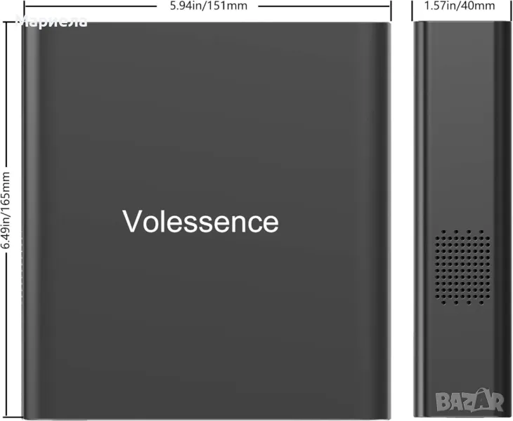 27000 mAh/99,9 Wh с размер 6,5 x 5,9 x 1,6 инча и тегло 2,6 Ib, захранващата банка Volessence AC е идеална за пътуване и бизнес пътуване със самолет и семейно къмпингуване на открито.