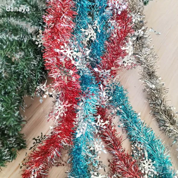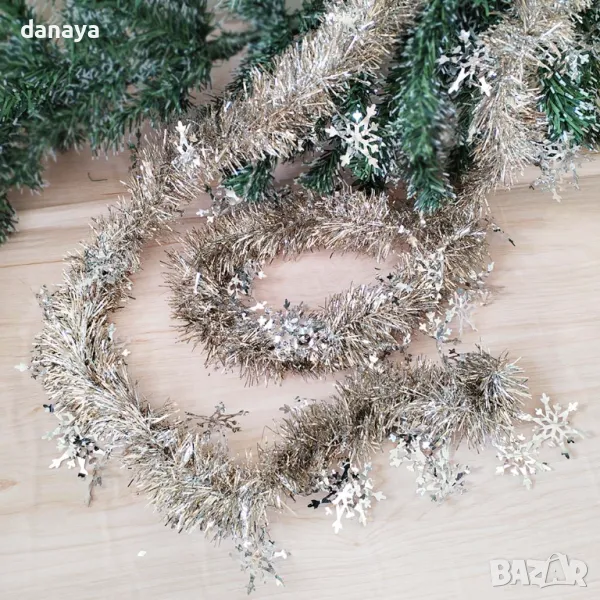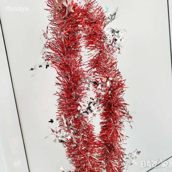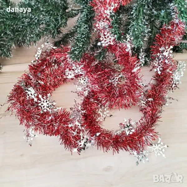 Коледна гирлянда, изработена от фолиеви нишки.