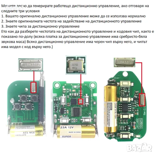 Копируеми чипове: PT2262, PT2240, PT2264, PT2260, PT2242, SC2262, SC2260, EV1527, P527, HT600, HT640, HT12D, HT12F, HT12E, SC5262 и др.