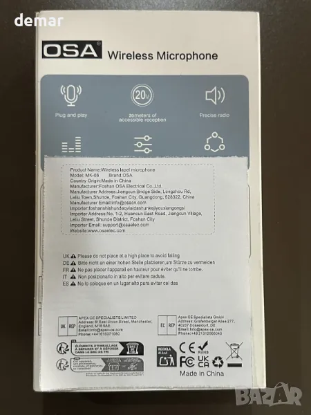 Мини безжичен петличен микрофон OSA за камера и компютър, време за работа до 9 часа