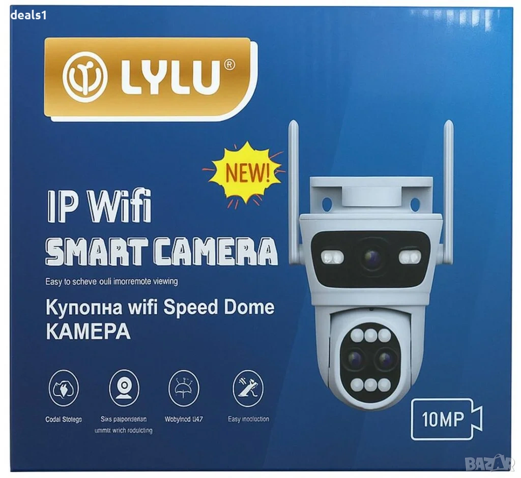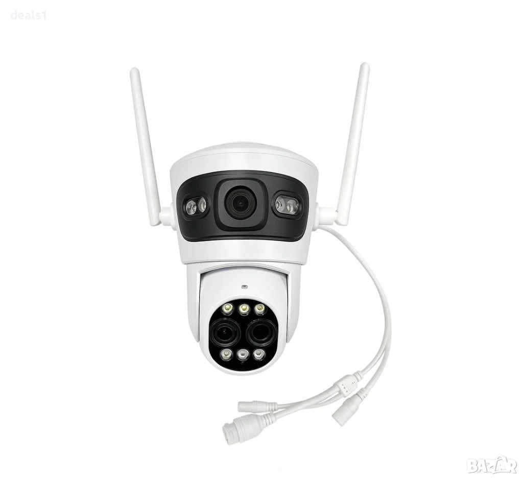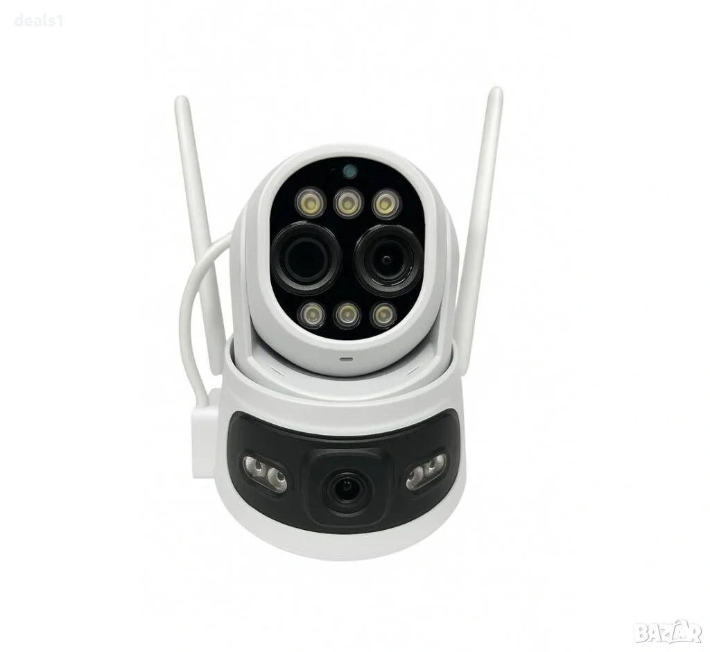 – WiFi камерата с три обектива е модерно решение за външно видеонаблюдение, което осигурява широко покритие и ясен образ благодарение на 10MP резолюция и 360° контрол (320° хоризонтално и 110° вертикално).