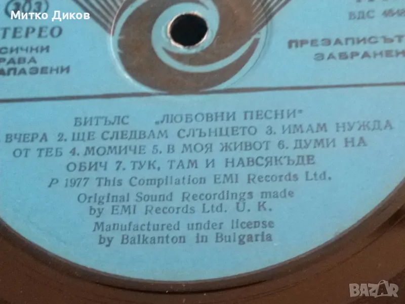 Битълс Любовни песни плоча Балкантон без корица, снимка 1 - Грамофонни плочи - 47867513 Битълс Любовни песни плоча Балкантон без корица, снимка 2 - Грамофонни плочи - 47867513 Битълс Любовни песни плоча Балкантон без корица, снимка 3 - Грамофонни плочи - 47867513 1/3