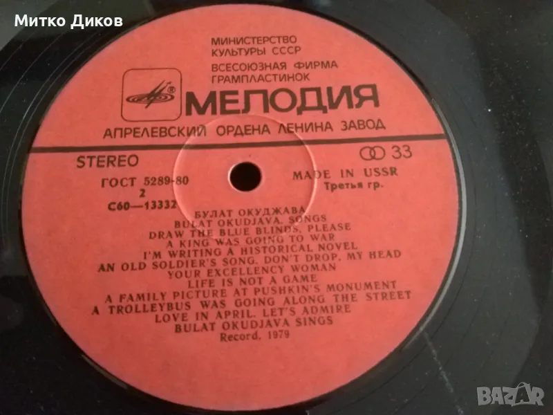 Булат Окуджава плоча Мелодия маркова 1980г работи → Обява 47867672