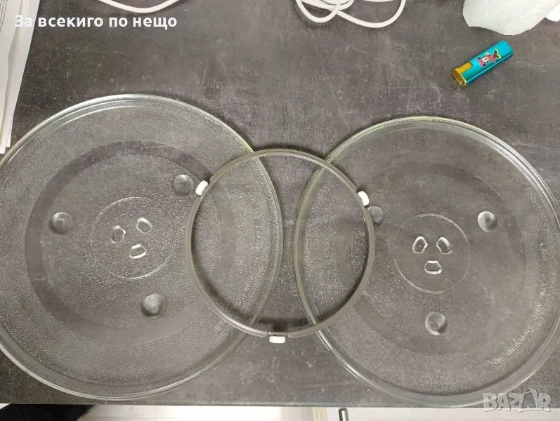 2 броя чиния за микровълнова фурна 30 см. цена 25 лева на брой.Обръч за чиния 30 см. цена 10 лв.Изпращам чрез Еконт или на лично предаване за София, Люлин 10 на метростанция Западен парк