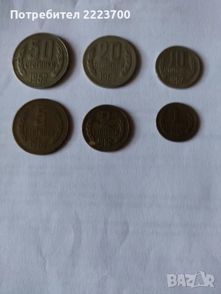Шест броя монети от 1962г., снимка 1 - Нумизматика и бонистика - 47868405 Шест броя монети от 1962г., снимка 2 - Нумизматика и бонистика - 47868405 Шест броя монети от 1962г., снимка 3 - Нумизматика и бонистика - 47868405 1/3