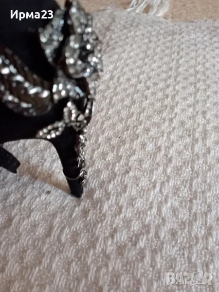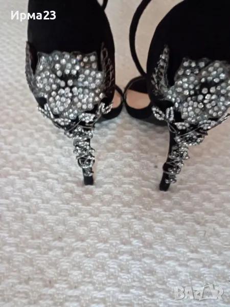 Дамски сандали на висок ток от естествен велур с разкошна инкрустация