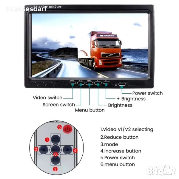 1 x 7-инчов 4Pin монитор за обратно виждане