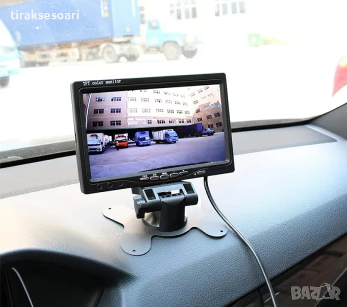 Камера за задно виждане с 7 инча дисплей със стойка и дистанционно 18 бр LED диода HD качество 12-24V за автомобил бус камион каравана джип автобус и др.