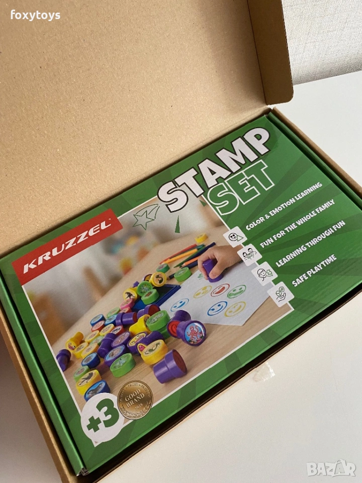 Опаковката съдържа цели 60 печата с разнообразни шарки, което гарантира на вашето малко дете много часове интересно забавление. Печатите имат шарки като животни или емотикони. Мастилото, което е върху печатите е безопасно за деца. Също така корпусите им нямат остри ръбове.