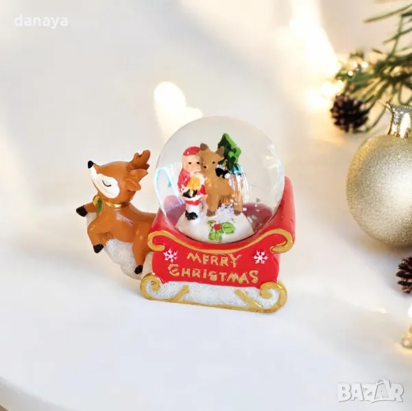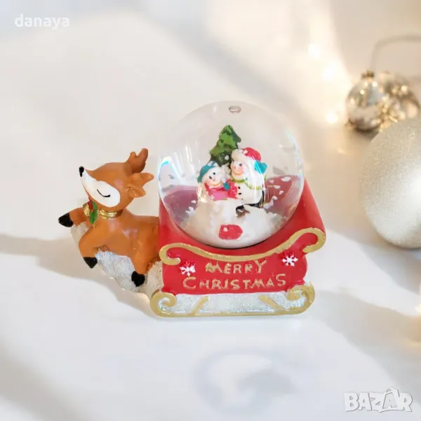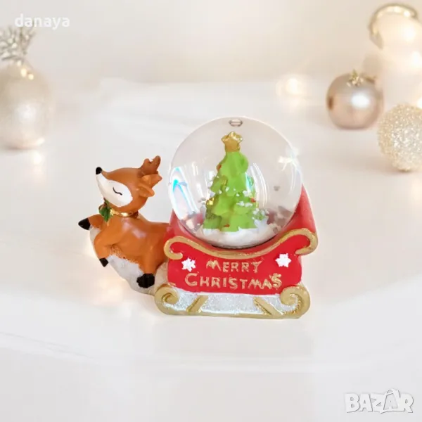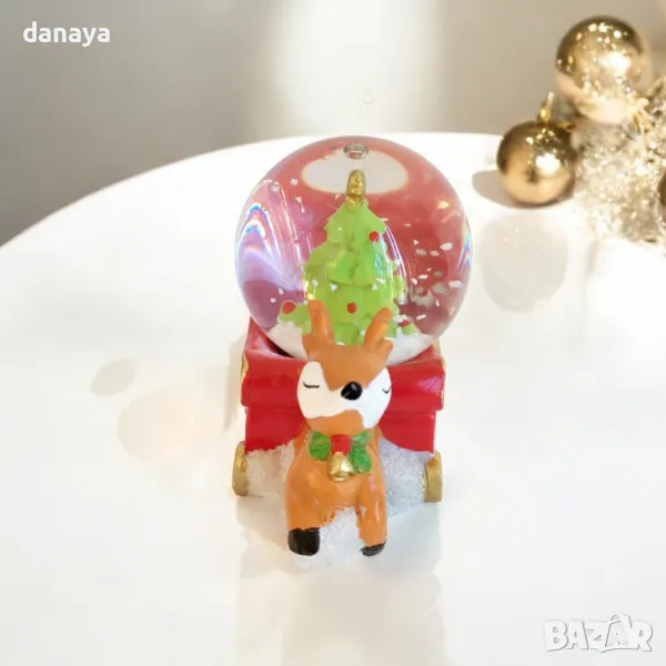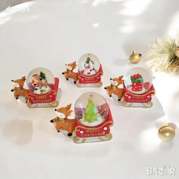 Коледна стъклена топка с валящ сняг с форма на еленче с шейна. Коледна снежна топка. Красива малка коледна украса за една вълшебна Коледа. Предлагат се в 4 варианта.