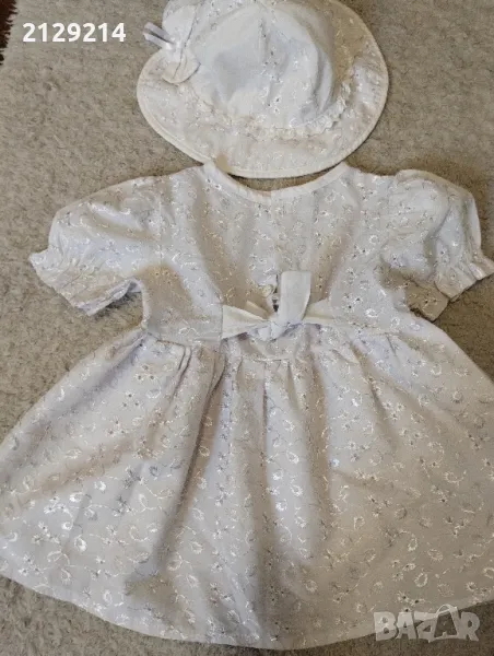 Две детски рокли, към едната има и шапчица. Стоят много красиво. Размер има на снимките, лилавата по етикет е 86, но най-добре е да се види точният размер от снимката. Нямат еластичност. Цената е обща.