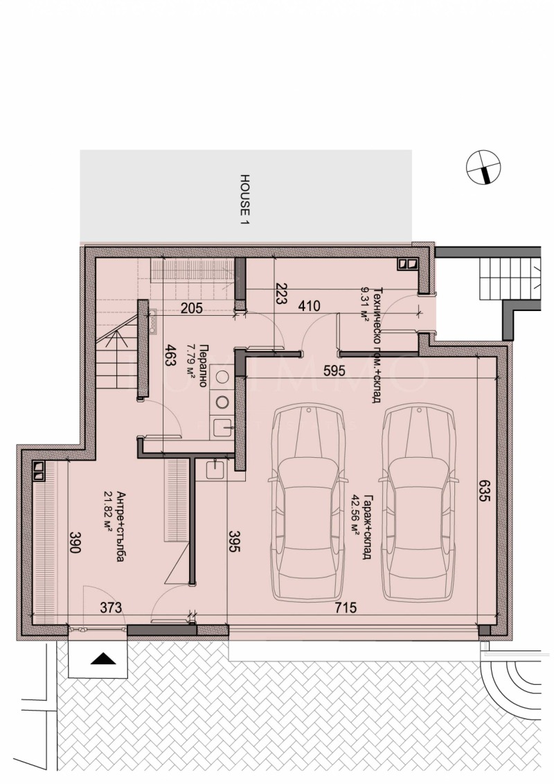 Ниво 1 - Гараж за две коли, перално помещение, техническо помещение