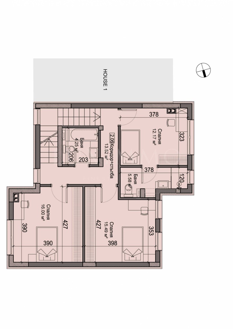 Всяка къща е на четири етажа, от които три надземни жилищни и един полуподземен етаж с по две или три паркоместа, складови и сервизни помещения, като само при къща 1 полуподземното ниво е с английски прозорец и възможност за фитнес/изба/стаи, а две паркоместа са осигурени на кота терен със самостоятелен достъп за тази къща.