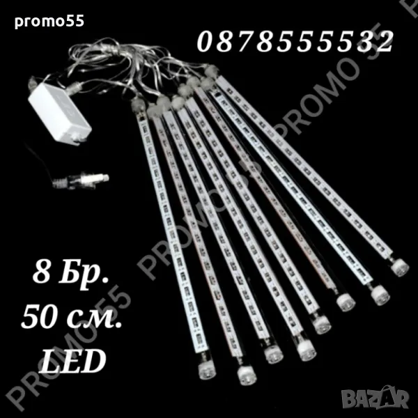 Лед Висулки Падащ Сняг 8Бр.х48см. 3м. Линия Лампички за Коледна Украса
