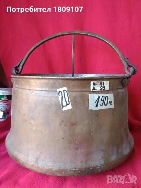 Дебелостенен меден казан от едновремешните майстори и материал 2 мм дебелина на ламарината. Бронзови дръжки. Размери на казана са видни от снимките. 100%гаранция за качество.
