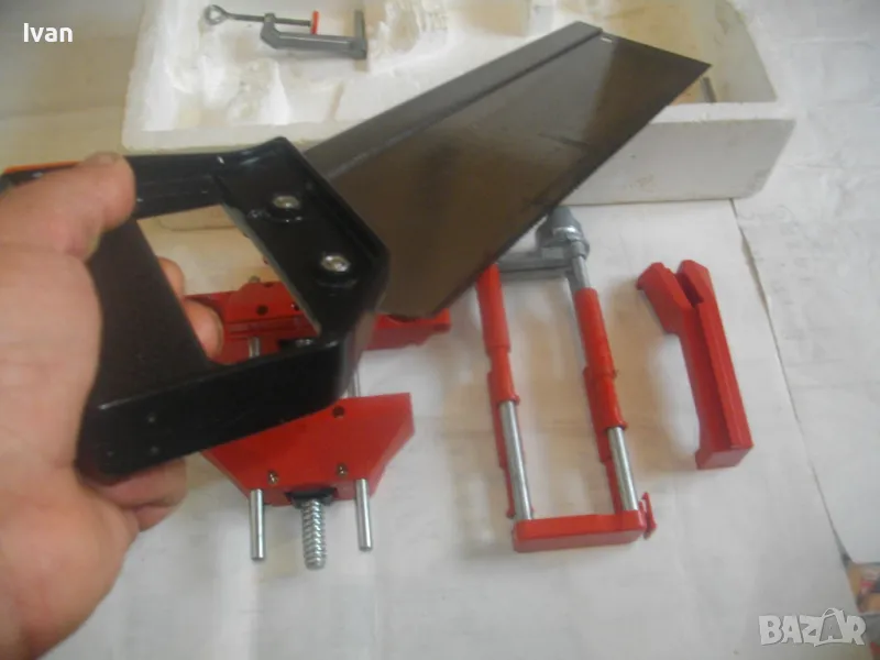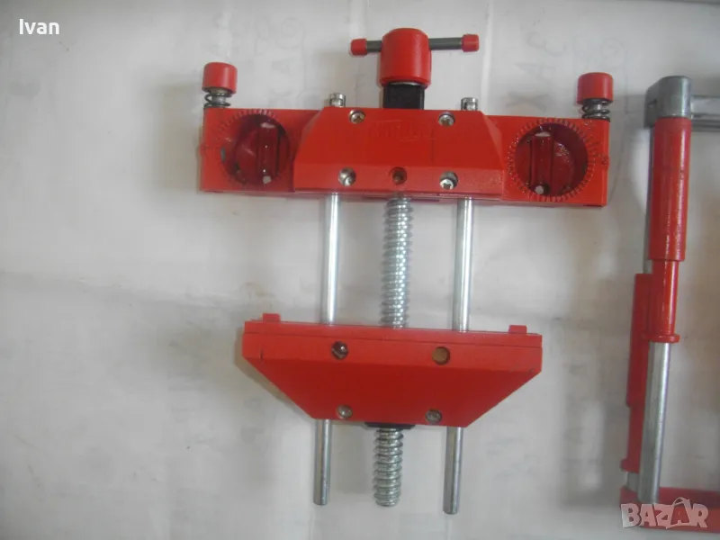 Цена на старо качество ФРГ ръчен трион пасвател с менгеме въртелива функция BESSEY - нов комплект в стиропор кутия. Съвсем нов, неизползван и неупотреяван. Марка маркирана на менгемето стойка BESSEY. На менгемето 2 отвора за поставяне на паставателя с въртелива функция градуси - до 90 градуса. Бързо освобожданане функция на приспособлението за пасвател въртене. Отваряне захват на менгемето - по цялата си ос - 14 см. Приспособление за държене на пасвателя трион - 1 бр. като може да се поставя от двете страни на стойката менгеме. Дръжка за цялата стойка менгеме с приспособление. 2 бр. алуминиеви стяги за захват към работна маса плот. Трион ръчен тип пасвател за рязане на дърво - ситни зъби прави, без чапраз. Твърд, не се огъва. Масивен. Дължина - 44 см. Дръжка на триона - бакелит нехлъзгаща се. Всичко е съвсем ново, неизползвано и неупотреявана. Кутия от стиропор и капак от стиропор. Размери на кутията 480 х 240 х 100 мм. Тегло - 2,2 кг.