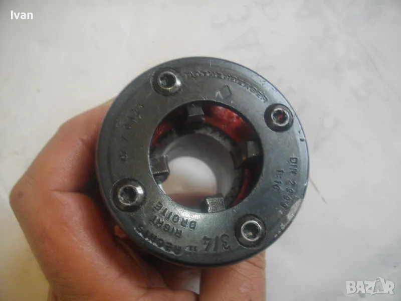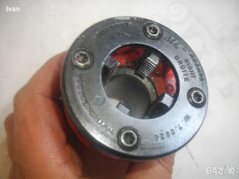 Резбонарезна глава за десни резби на тръби за ръчна винторезка ROTHENBERGER размер 3/4 цол - цена 129 лв. Съвсем нова, неизползвана и неупотребявана. Оригинална на марката. Маркировки: 3/4 Rotnenberger - Rechts Right Droite DIN 2999. Коничност 1:16 Наличие на сериен номер на главата за проверка в сайта на марката. Цена на главата 129 лв.