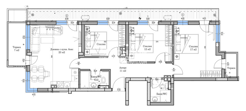 Оферта 65698: Представяме ви новопостроена сграда със собствен стил с изчистена и модерна визия, проектиран така, че да създаде максимален комфорт и уют за живеене. Съчетанието на модерен дизайн и форми с уникално разпределените апартаменти прави обекта изключително привлекателна инвестиция. В сградата има 21 апартамента всеки от тях с функционално разпределение. Проектираните жилища са с квадратури от 57 кв.м до 127 кв.м. Апартамента се състои от дневна с кухненски бокс- 23кв, три спални, две санитарни помещения и три тераси. Отличаващото предимство е площта на жилищата, които са изключително просторни. Изпълнението ще се осъществява с висококачествени материали и съвременни технологии, по европейски стандарт, шесткамерна PVC дограма троен стъклопакет, блиндирана входна врата с 4-странно заключване, сензорно осветление, хидравлични асансьори с огледална кабина, HPL панел !!! Осигурено е паркирането чрез възможност за закупуване на гараж или паркомясто в надземно ниво и подземен паркинг на сградата. Приложените снимки са от готови сгради на строителя.