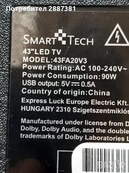 SmartTech 43FA20V3 EL.MT9216-FG75 Текон - DCBHM-C168A-02на части → Обява 47878645