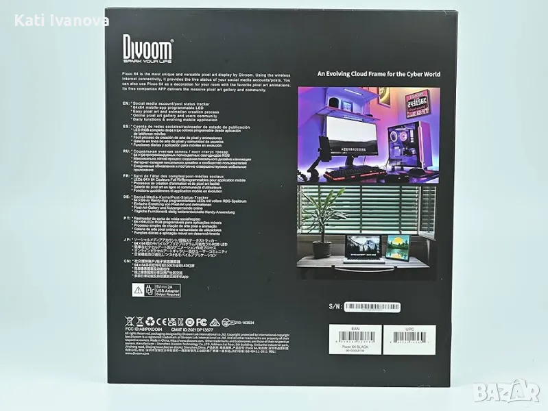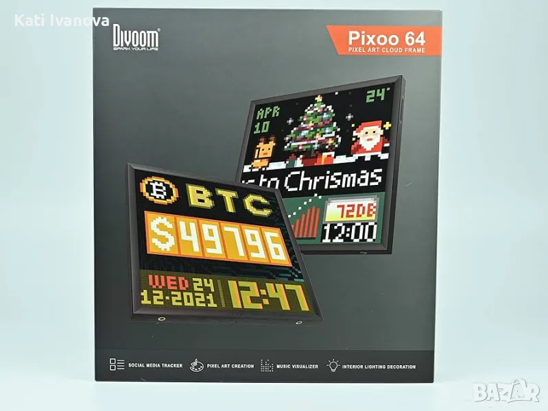 Divoom Pixoo-64 е 10,3-инчова WiFi пикселна дисплейна рамка с 64 x 64 пиксела LED панел. Можете да използвате Pixoo като часовник за пиксели, можете също така да настроите онлайн брояч на информация и Pixoo-64 автоматично ще извлече избрана информация, като например: последователи на стрийминг канали, резултати от играта KDA, информация за стрийминг на Twitch и др.