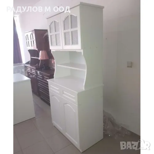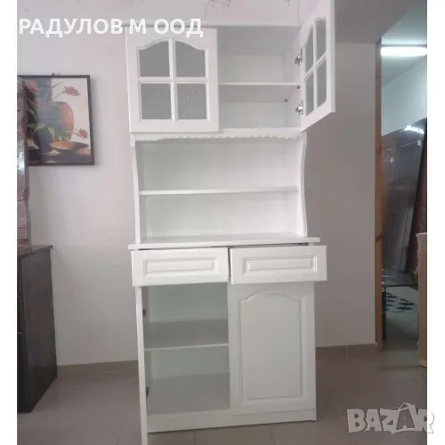 Разполага с 1 двоен шкаф, 2 чекмеджета и 1 двойна витрина.
