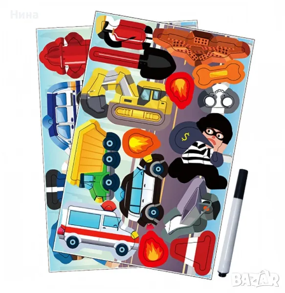 Детска игра с магнитни елементи 🧲 Пожарна🔥 Полиция 🚓 и Строителство 🛠 Съдържа: