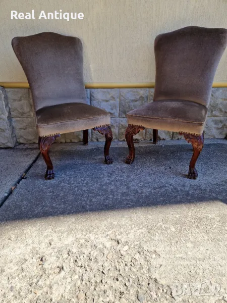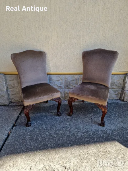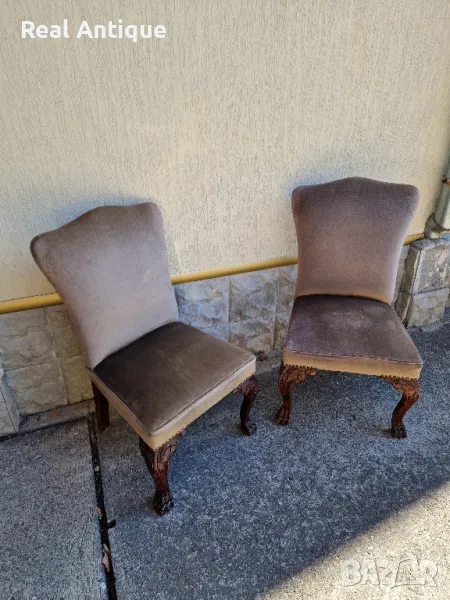 Продавам страхотен чифт антикварни английски столове от масив с уникална дърворезба в много добро състояние. Размери височина 90 см дължина 45 см и ширина 50 см. Чудесно допълнение към интериора на Вашия дом офис вила ресторант хотел. Работя с всички куриери. Отговарям бързо.