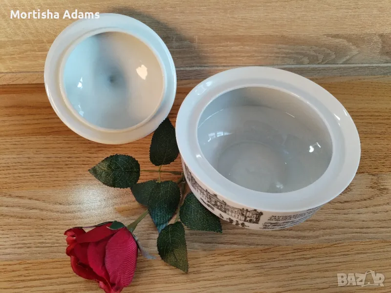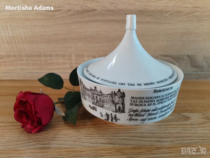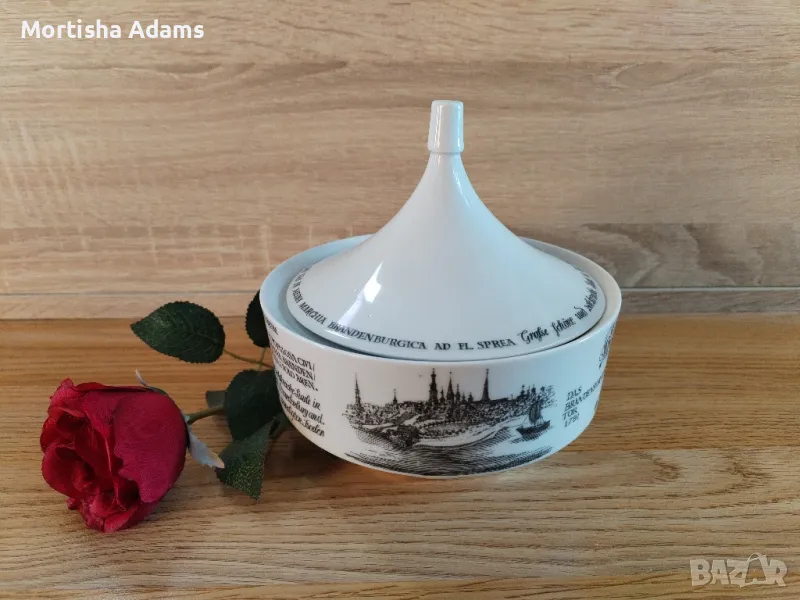 🌹 Бонбониера Unterweissbach, ГДР, произведена в периода 1958- 1976г. Без следи от употреба. Височина- 14см. с капачето, външен диаметър на отвора 14см.