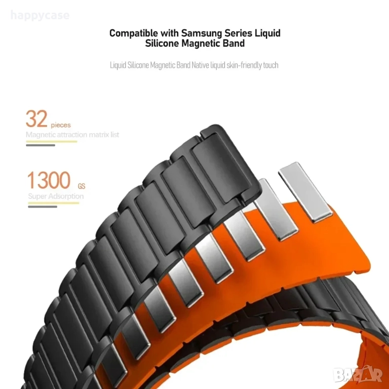 * Стабилно закопчаване осигурено от множество магнити разположени във всеки сегмент от каишката