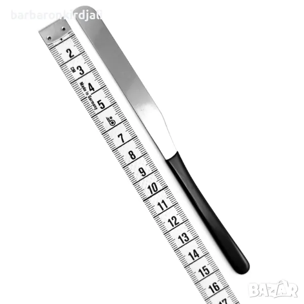 Метална шпатула с дървена дръжка, предназначена за работа с топла кола маска.