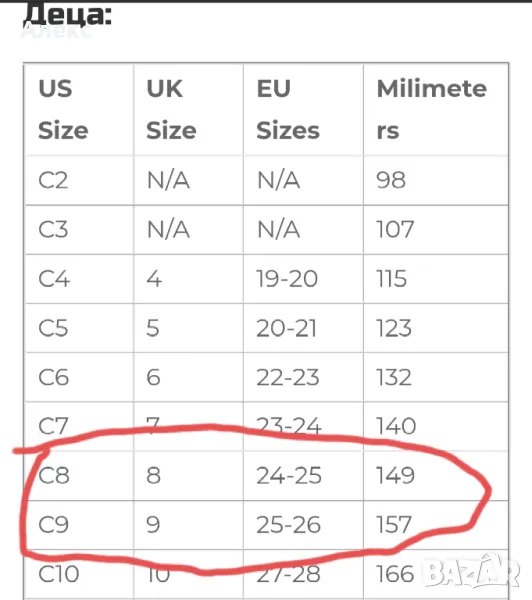 Размер: 25-26 европейски, C9 USA, 157 милиметра
