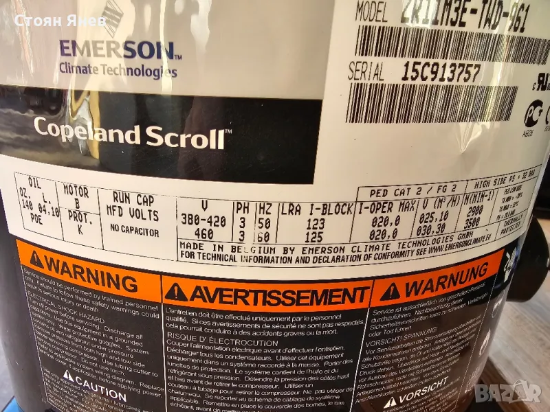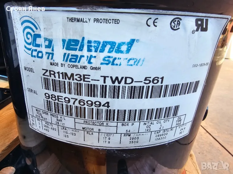 Хладилен компресор Copeland ZR11M3E-TWD-561 - 90,000 BTU, снимка 1 - Други машини и части - 47884205 Хладилен компресор Copeland ZR11M3E-TWD-561 - 90,000 BTU, снимка 2 - Други машини и части - 47884205 Хладилен компресор Copeland ZR11M3E-TWD-561 - 90,000 BTU, снимка 3 - Други машини и части - 47884205 Хладилен компресор Copeland ZR11M3E-TWD-561 - 90,000 BTU, снимка 4 - Други машини и части - 47884205 Хладилен компресор Copeland ZR11M3E-TWD-561 - 90,000 BTU, снимка 5 - Други машини и части - 47884205 Хладилен компресор Copeland ZR11M3E-TWD-561 - 90,000 BTU, снимка 6 - Други машини и части - 47884205 1/6