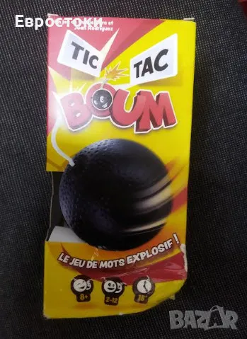 Подходяща за деца от 8-годишна възраст и възрастни. Настолна игра Tic Tac Boum е идеална игра за споделяне на моменти на смях и съучастие със семейството или приятелите. Стимулира креативността и умствената ловкост на играчите.
