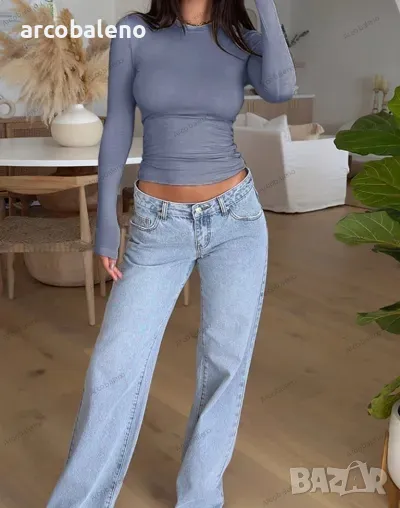 Дамска едноцветна вталена тениска с дълги ръкави в стил Y2K, 4цвята