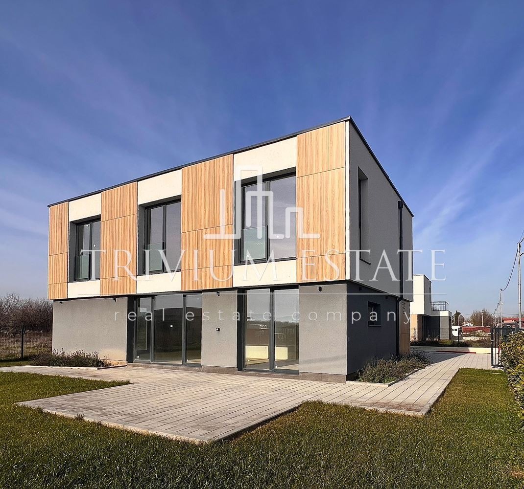 Къщата е с общо РЗП от 245 кв.м, с модерна визия изпълнена по дизайнерски проект, с най-висок клас материали, френски прозорци осигуряващи светлина и простор. Издава се на шпакловка и замазка. Разположена е в парцел с площ от 530кв.м.