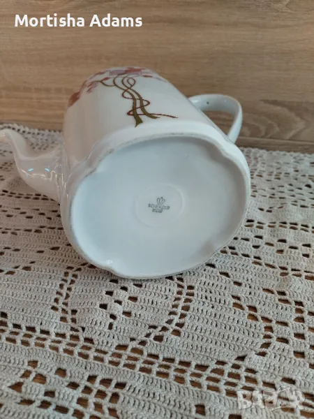 🩷 Изключително нежен немски чайник, фин, лек и прозрачен порцелан, двустранна декорация. Без забележки и без капаче. Вместимост- 1л.