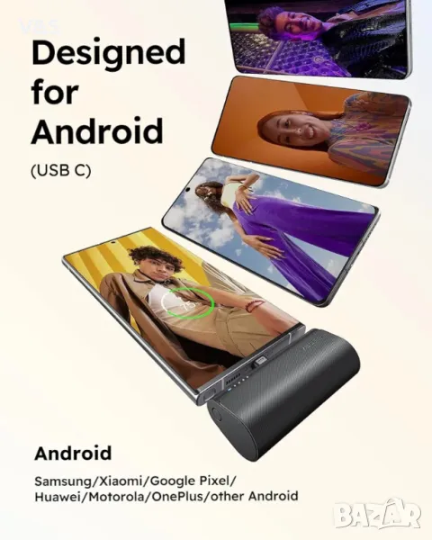 Преносимо зарядно устройство VEGER, USB C Power Bank, 5000mAh Mini Battery Pack Fast Charging 20W Small Charging Bank за Samsung Galaxy , Pixel, Moto, LG, Oculus Quest, Android
