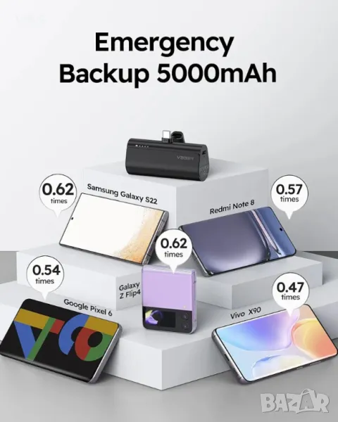 Преносимо зарядно устройство VEGER, USB C Power Bank, 5000mAh Mini Battery Pack Fast Charging 20W Sm