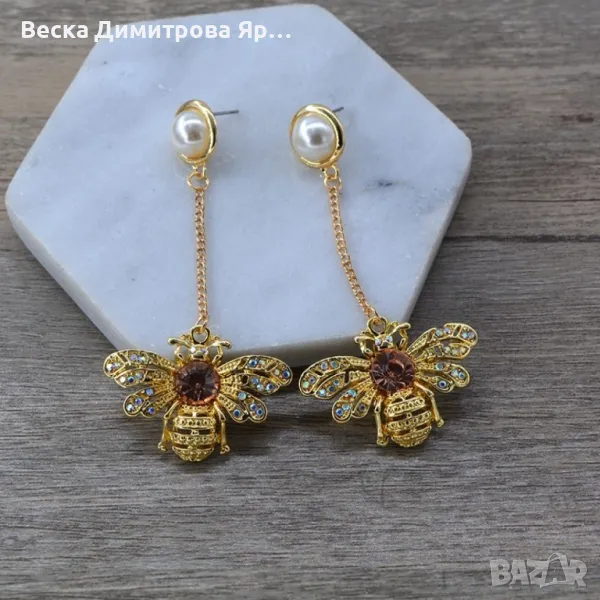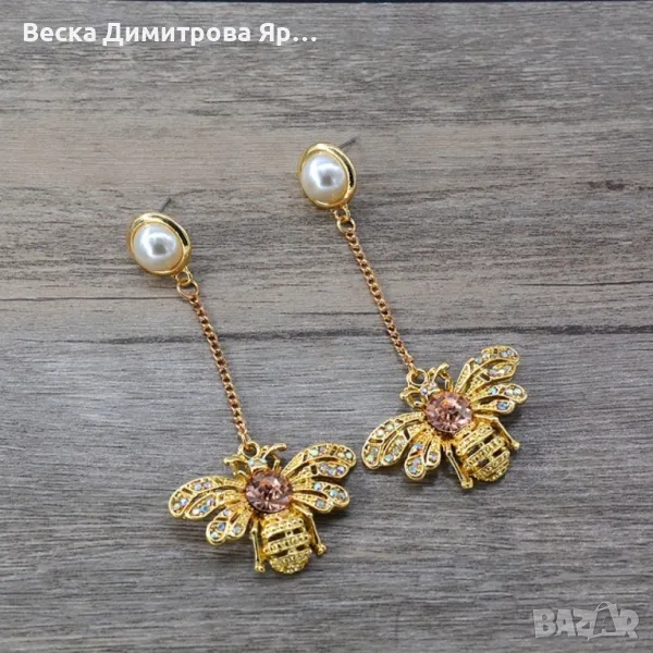 Златни обеци с висулка пчела А206 → Обява 47888069