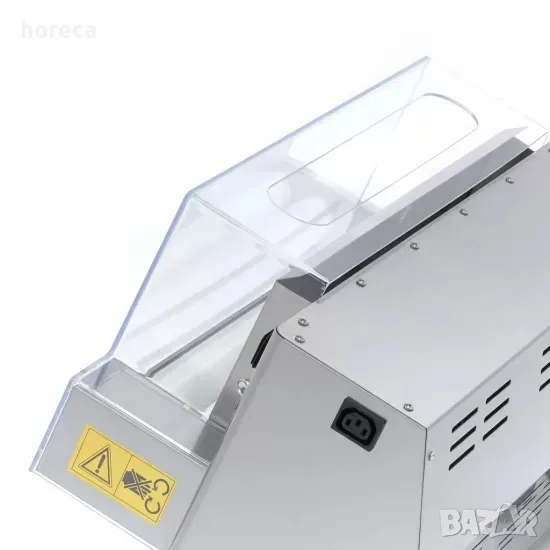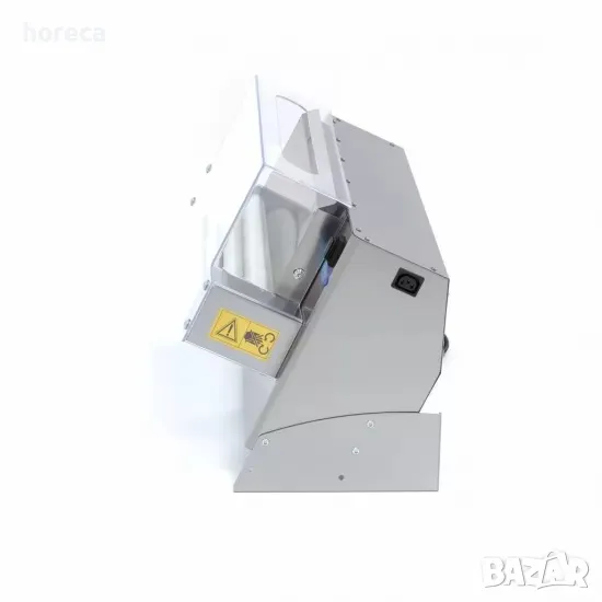 0 и 4 мм. Оборудвана с издръжлив и мощен мотор, работи само с една скорост. С крачен педал за лесно управление. Прозрачният пластмасов защитен капак и предпазеният ключ осигуряват безопасност на работа. Корпусът е изработен изцяло от неръждаема стомана и се почиства много лесно. Тестото не се загрява по време на разточването.