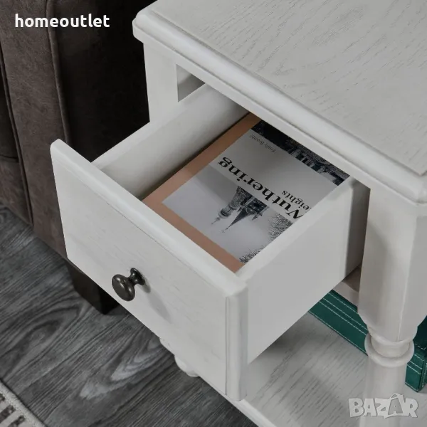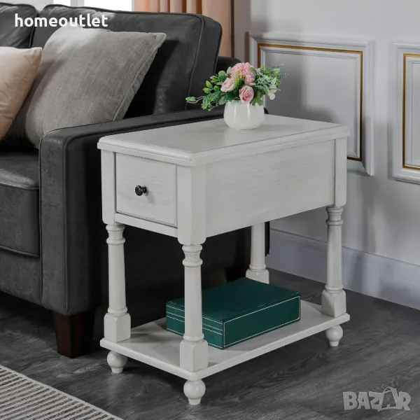 Тясната странична масичка с 1 чекмедже и допълнителен рафт ви предлага достатъчно място за съхранение на вашите декоративни предмети - лампи, книги, рамки за снимки, списания и др.