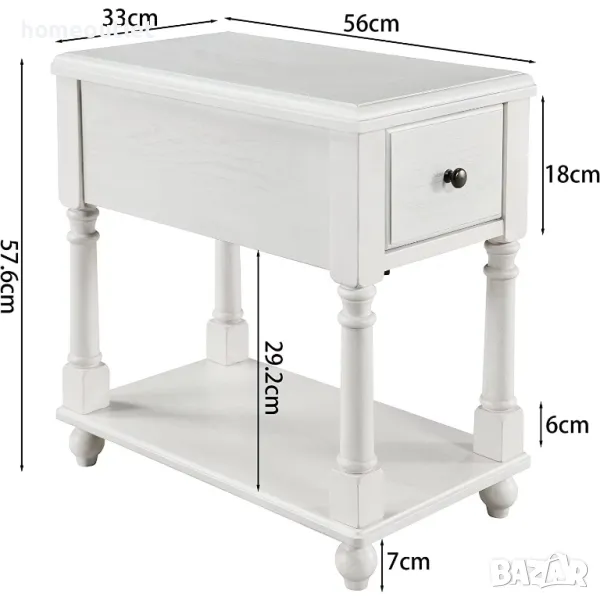 Размери на чекмеджето на крайната маса: 18 x 33 x 56 см