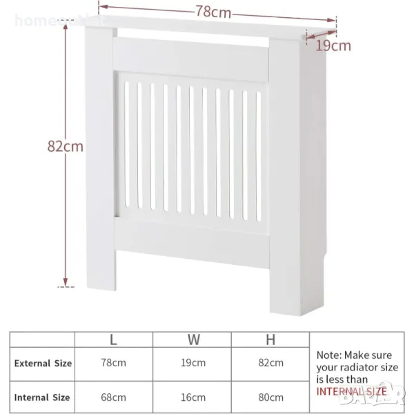 Параванът за радиатор е изработен от MDF плоскост клас E1, която е безопасна и екологична.