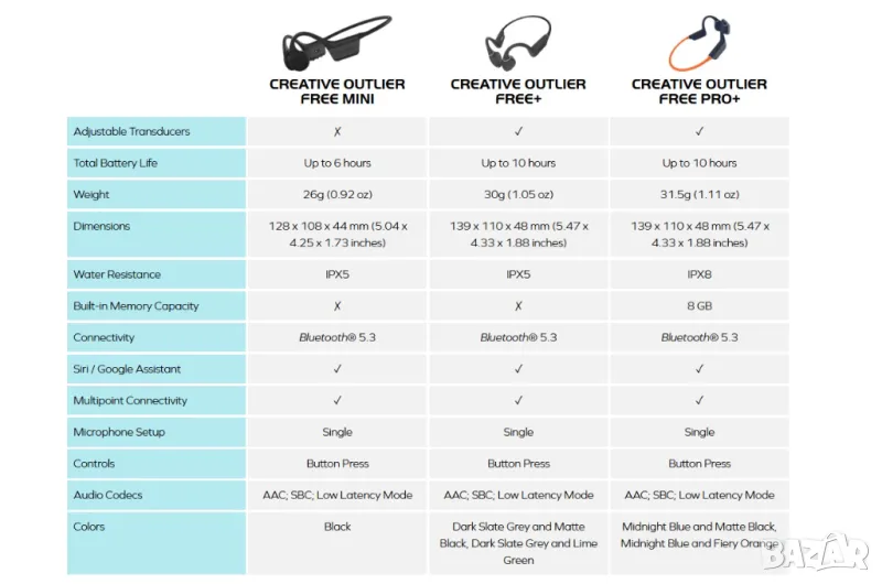 • Creative Outlier Free Mini/Bluetooth Слушалки/Костна проводимост