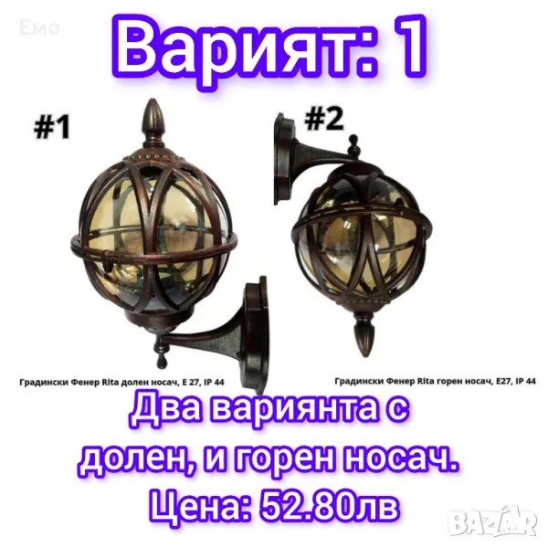 Градински фенери със стойка, и висящи, 7 различни модела → Обява 47892624