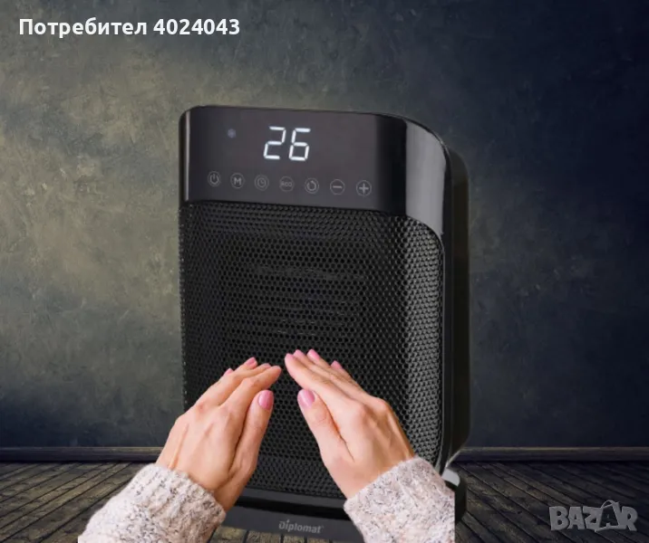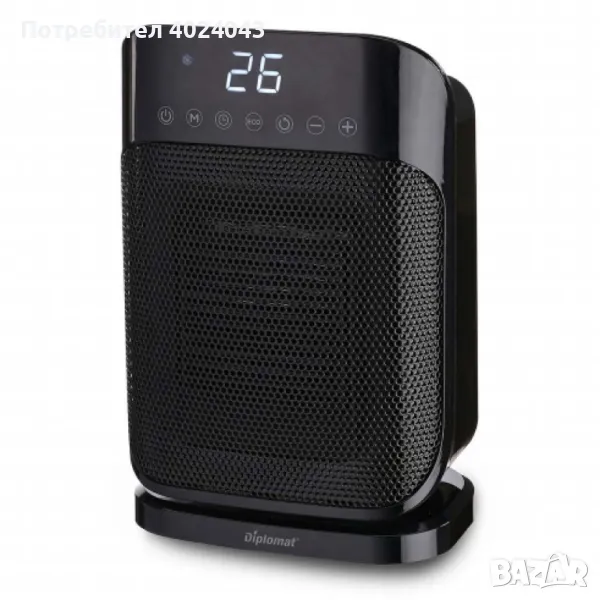 Вентилатор 30% по-високо топлоотдаване Сензорен панел за управление с тъч бутони LED дисплей Режими „в готовност“ и Еко 24-часов таймер Настройка на температурата Работна площ: около 15 м2 Широкоъгълна 85-градусова осцилация Защита против прегряване Система против замръзване Размери (ШхВхД): 195x152x290 мм Водо- и прахоустойчивост: IP21 1800W, 220-240V/ 50-60Hz .