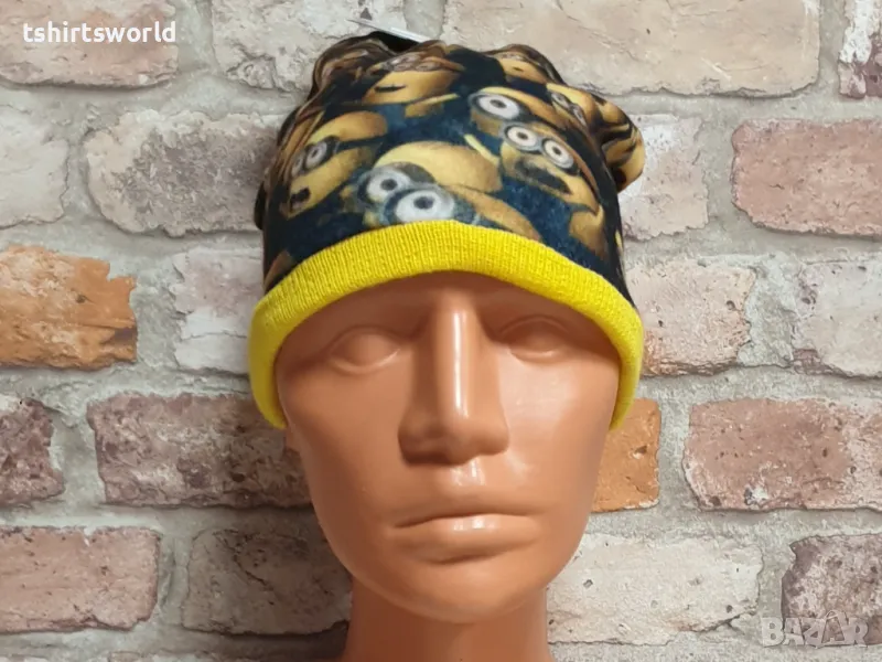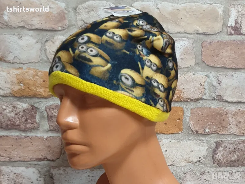 Уникална, функционална, универсална, стилна и модерна нова зимна детска шапка с Миньони.