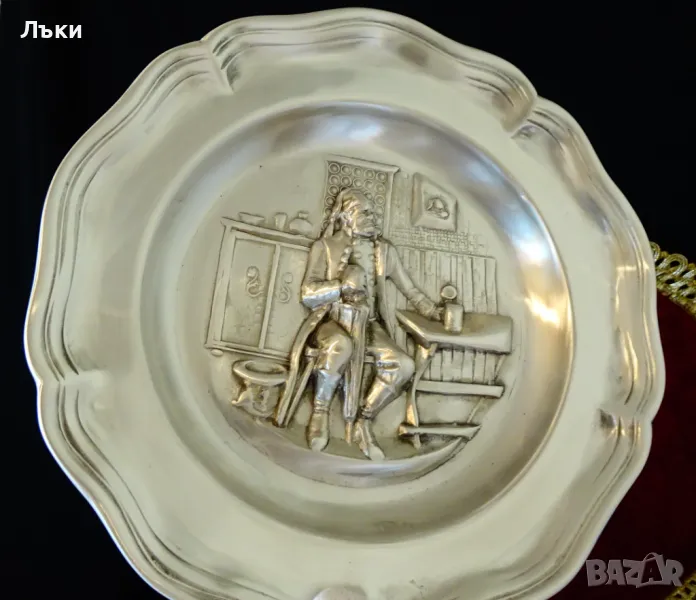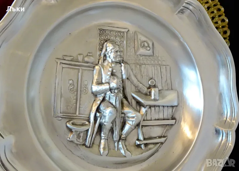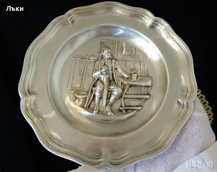 изработка от 95% калай и 5% сребро,маркирана от производителя.Паното е подарено